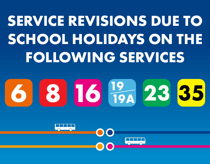 Please be aware that during the week commencing Monday 27 October 2025, several bus services will operate to school holiday timetables due to the half-term break.